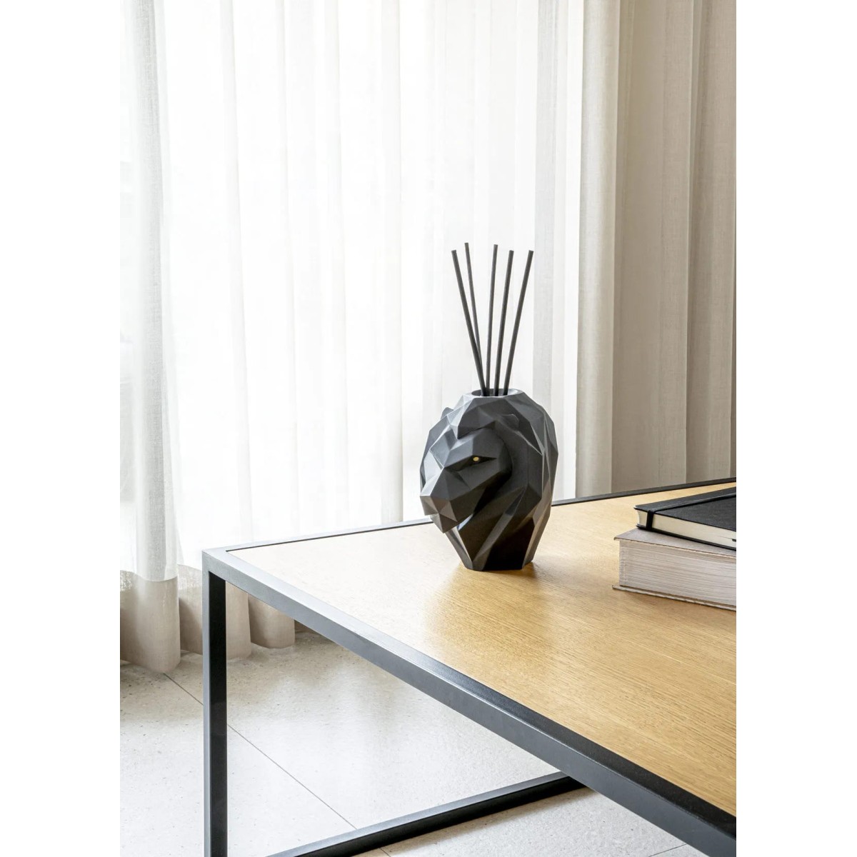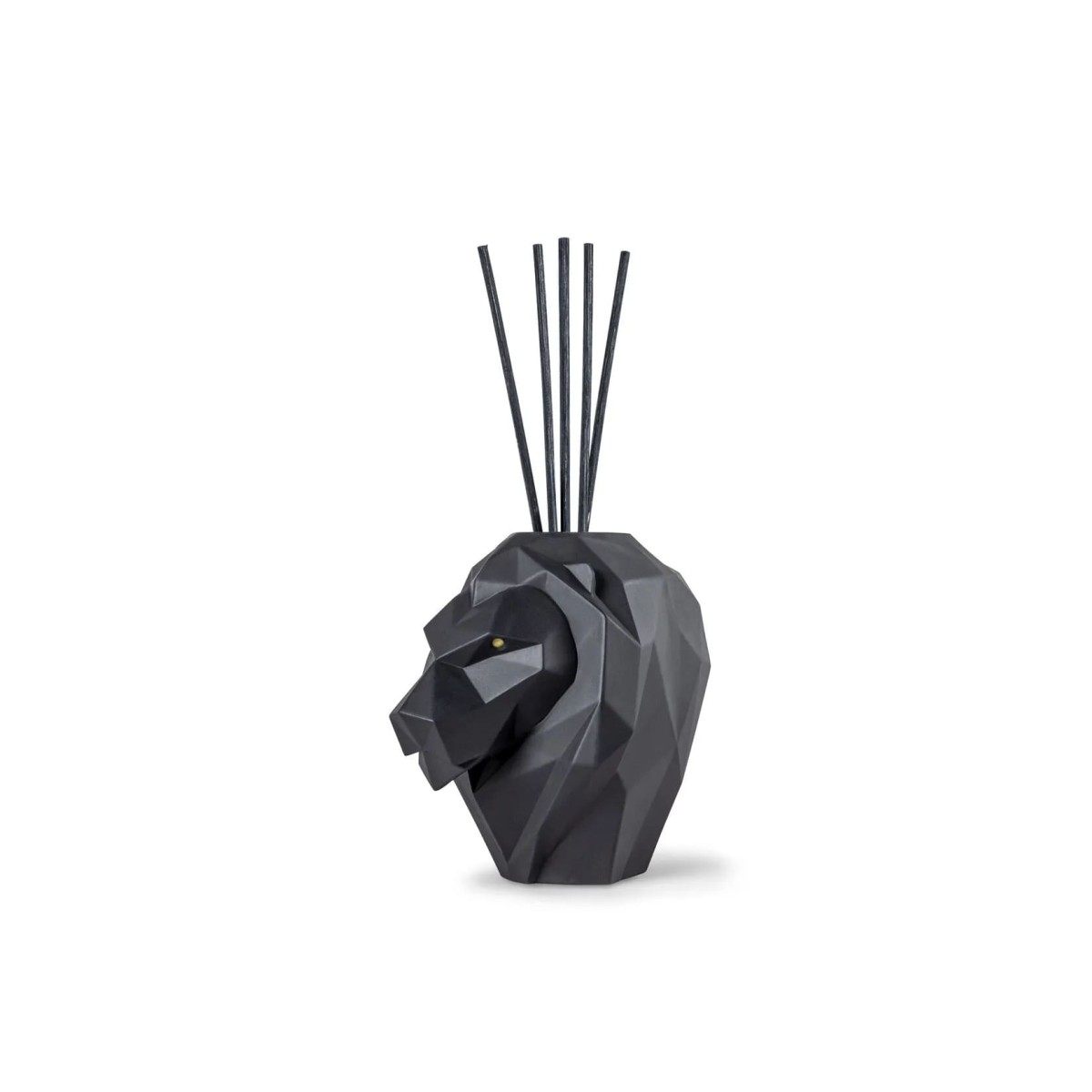 Ароматический диффузор в форме головы льва с ароматом "Несокрушимый дух", выполненный из матового черного фарфора.