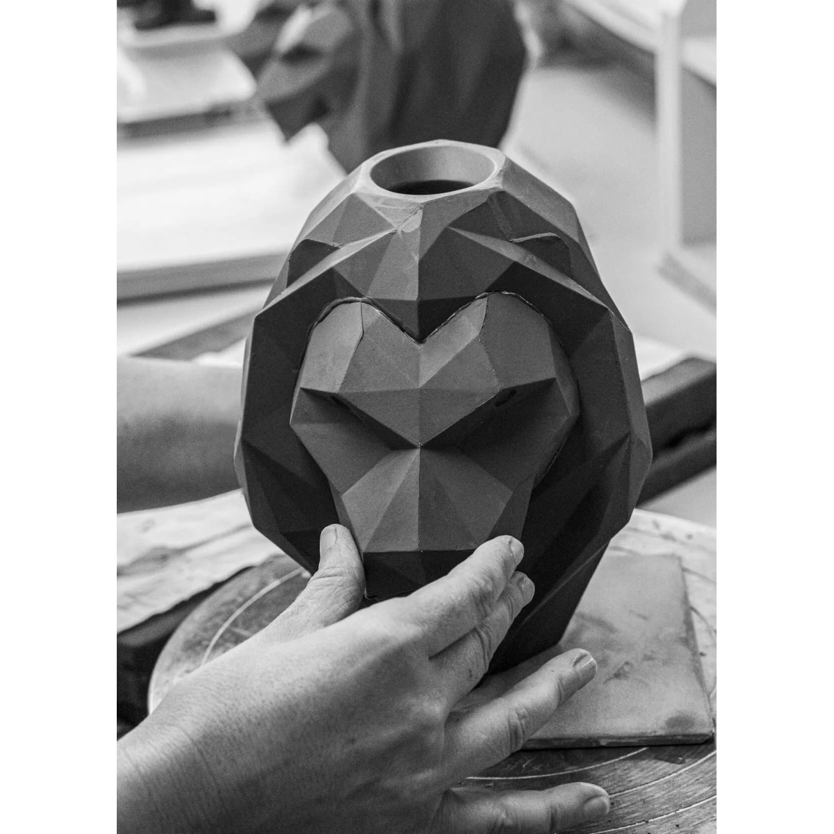 Лев дополняет коллекцию ORIGAMI, которая демонстрирует современное видение традиционного японского искусства оригами, в котором геометрические формы, создаваемые путем складывания бумаги, преобразуются в грани, обладающие огромной скульптурной и декоративной силой. Матово-черная отделка этого фарфорового изделия ручной работы подчеркивает выразительность формы львиной головы.