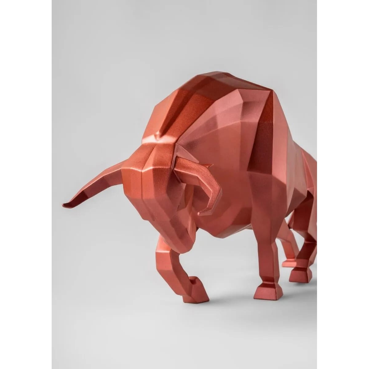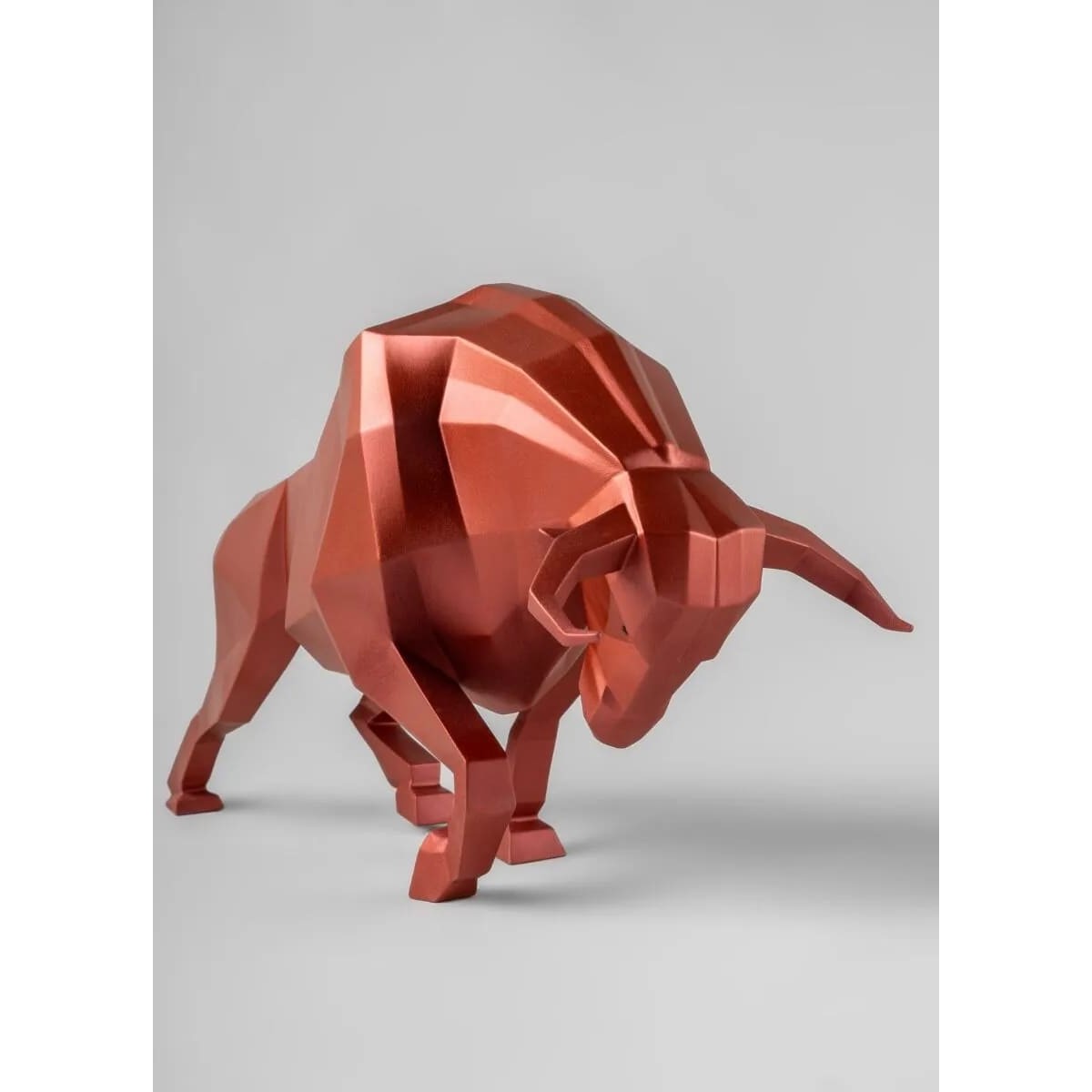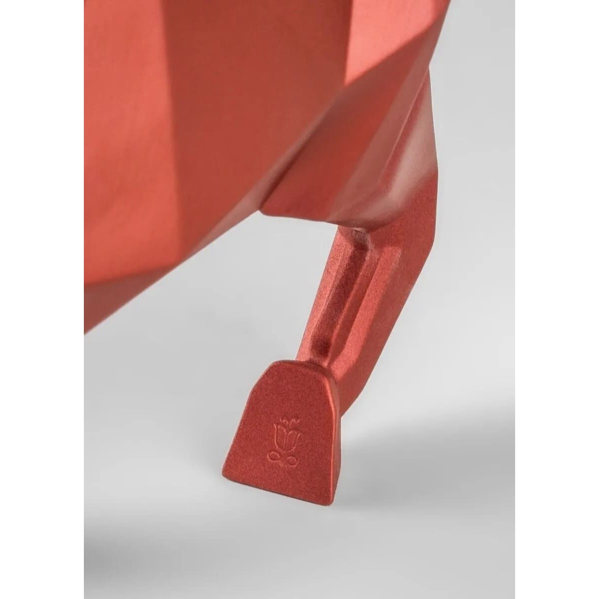 Фарфоровая скульптура, изображающая быка, готовящегося к атаке. Скульптура изготовлена вручную из матового фарфора и оформлена в красных тонах с металлическим эффектом. Этот бык принадлежит к коллекции ORIGAMI, которая черпает вдохновение в традиционном японском искусстве и предлагает геометрическое и концептуальное видение животного мира.