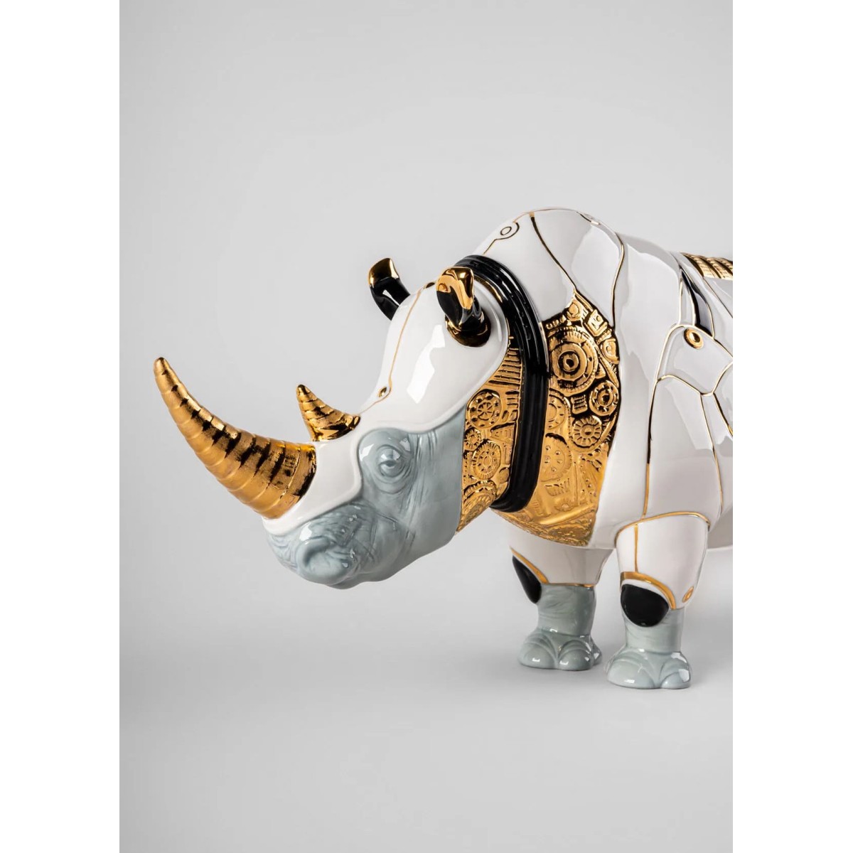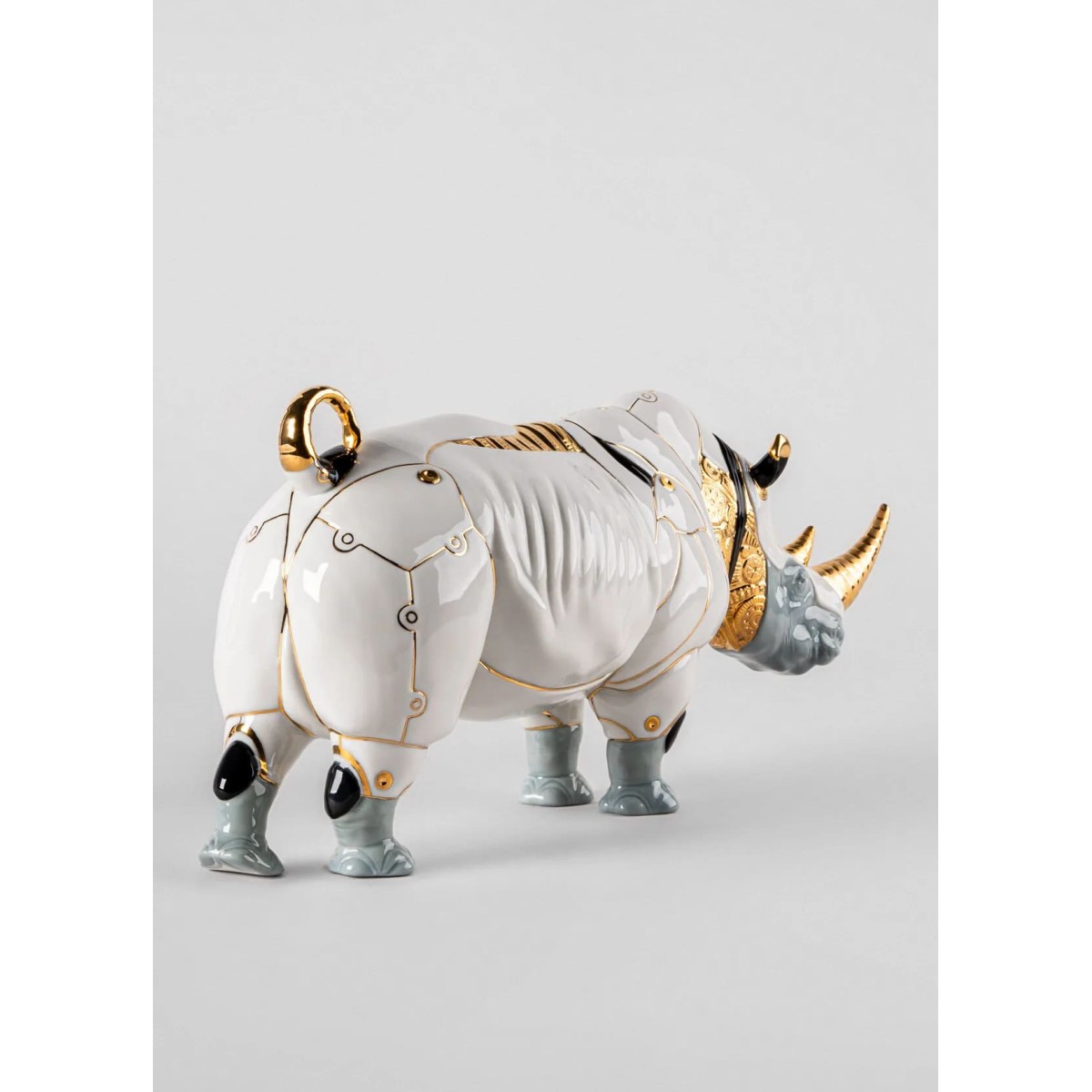 Скульптура носорога из новой коллекции CYBORG выполнена вручную из глазурованного фарфора.