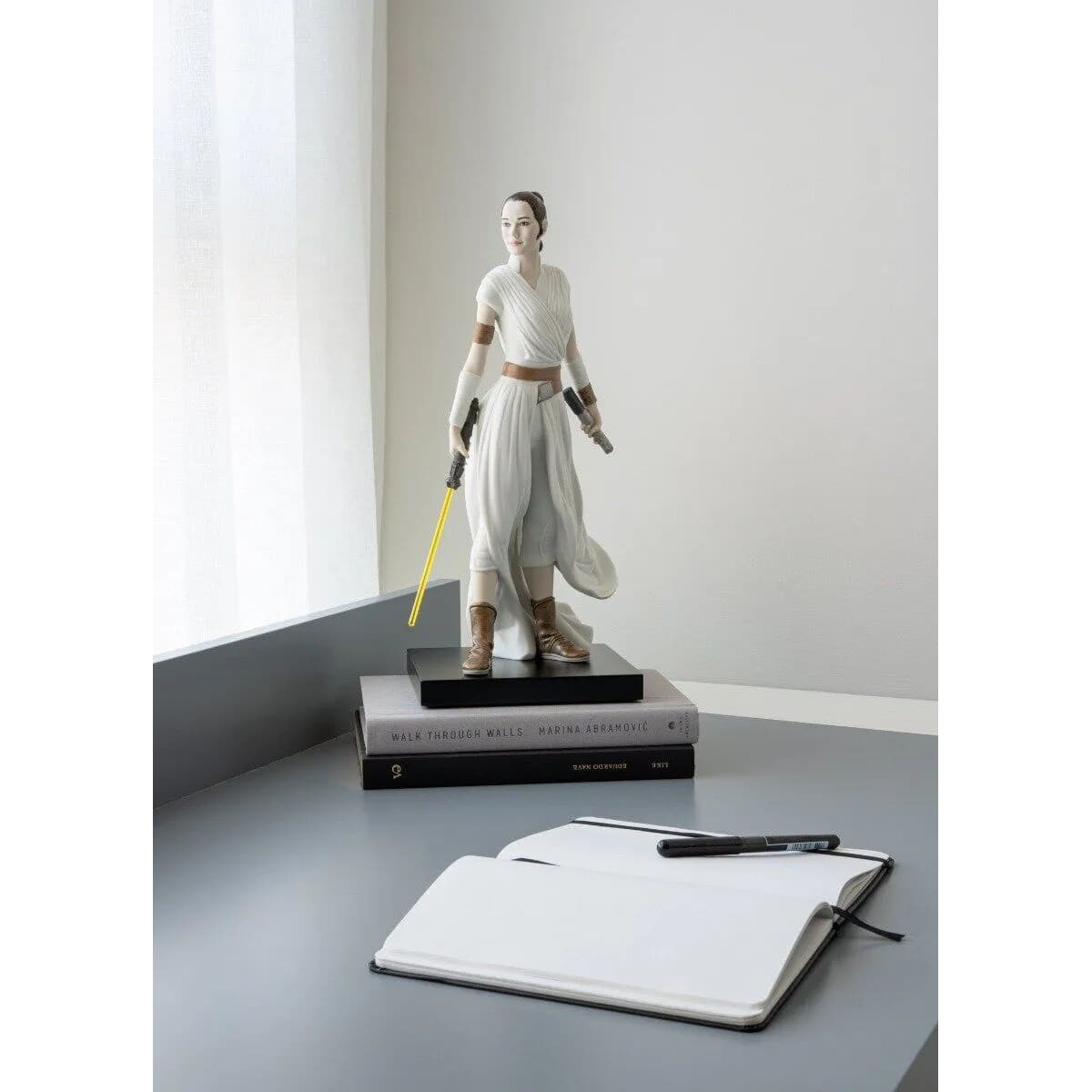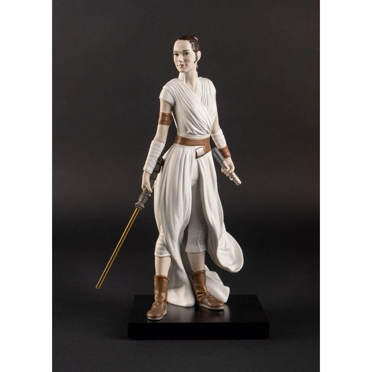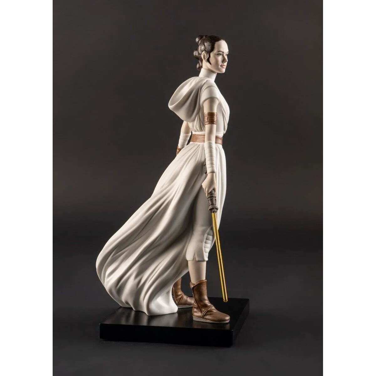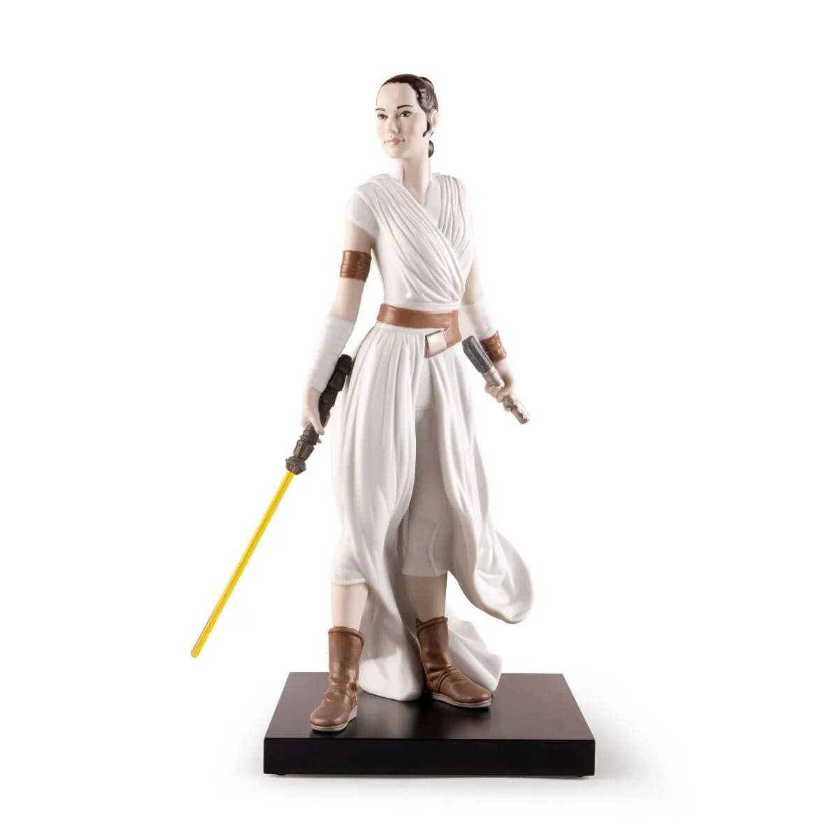 Рей - это последнее дополнение к коллекции Star Wars by LLADRÓ. Рей является главной героиней третьей. Скульптура изображает сцену где Рейдержит в правой руке световой меч, желтый свет которого символизирует будущее, а в левой руке она держит сломанный световой меч Люка Скайуокера, символизирующий прошлое.