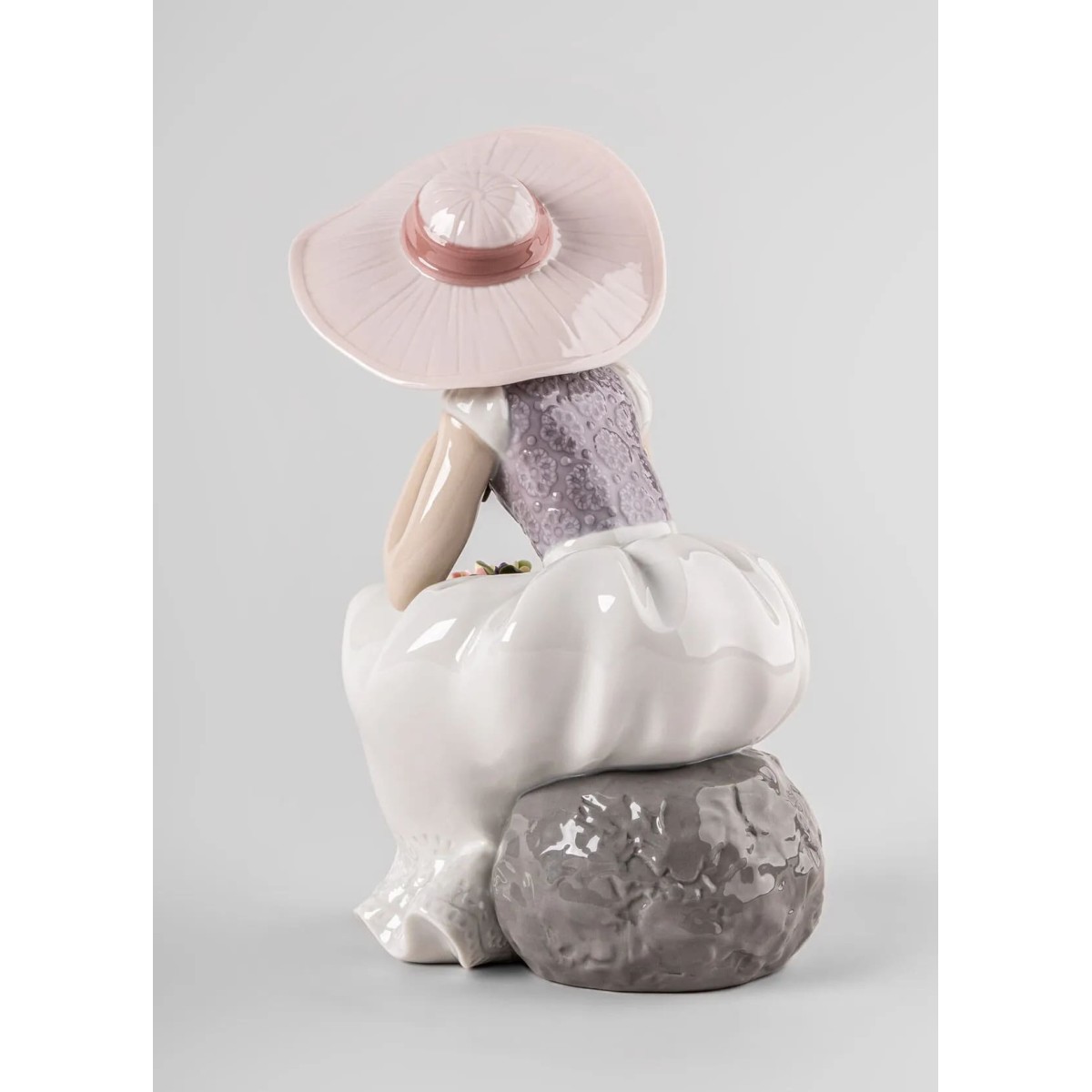 Фарфоровая статуэтка девочки в шляпке с букетом цветов на коленях. Статуэтка выполнена в глазурованном фарфоре