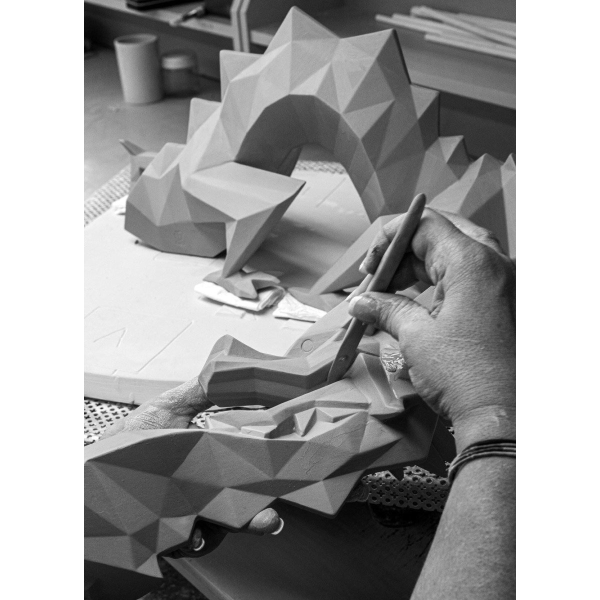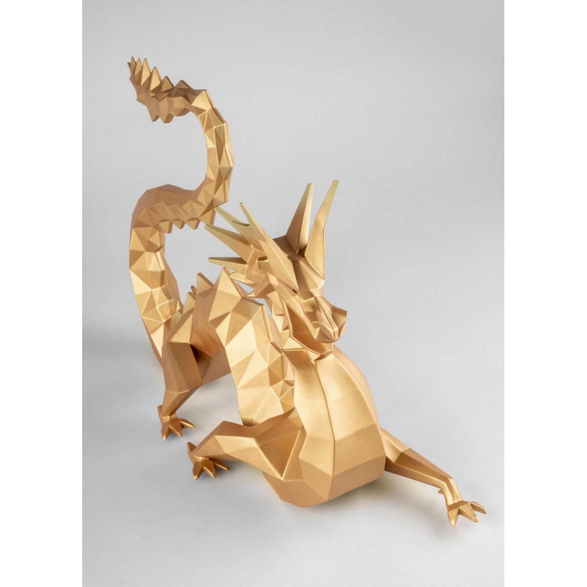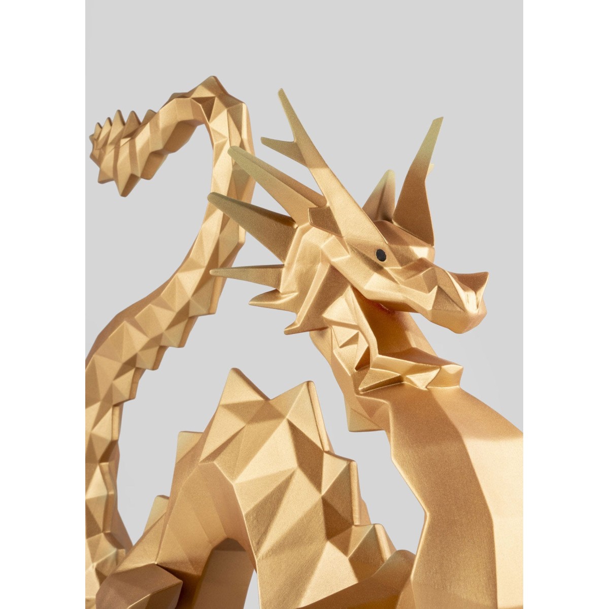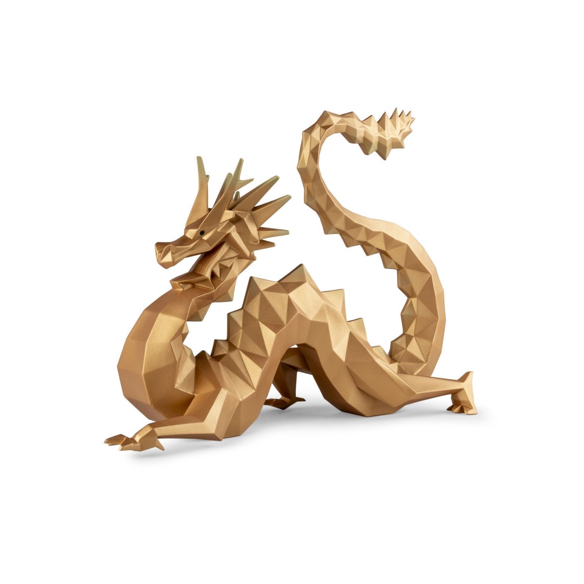 Дракон - один из самых могущественных символов в восточной культуре. Ассоциируясь с мудростью, удачей и защитой, он приобретает новую форму в этом творении. Его угловатые формы, динамичная поза и напряженность силуэта напоминают о силе и движении. Для достижения нужного золотого пигмента, которым покрыт дракон, мы используем натуральные минеральные пигменты, покрытые тонким слоем оксида металла.