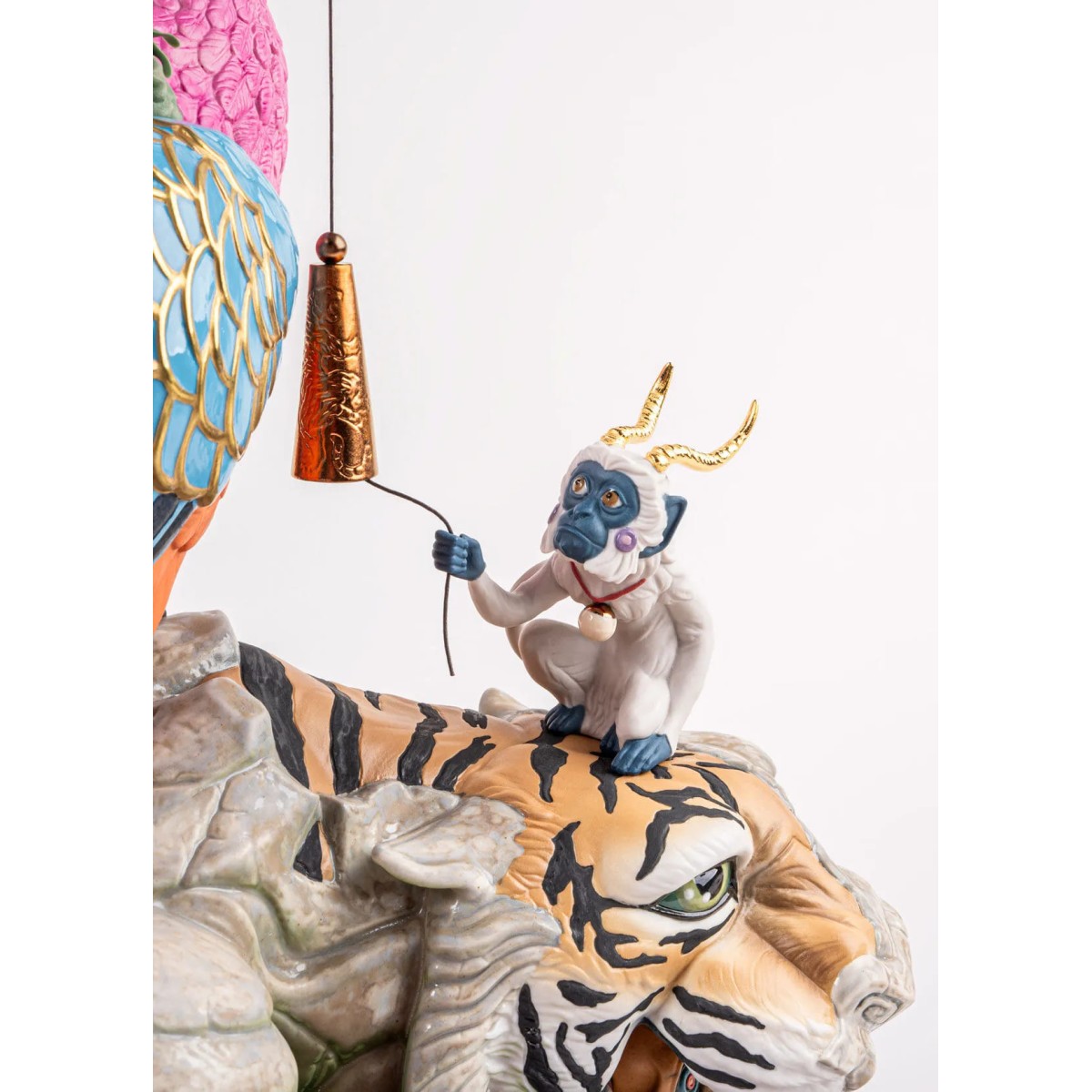 "Эфемерные сокровища", вдохновленные фауной азиатских джунглей, превращают одноименную картину художника в фарфоровый шедевр. Каждое изображенное животное, например павлин, тигр или обезьяна, играет ключевую роль в аллегории сосуществования видов в хрупких средах обитания. С помощью ярких цветов и тщательной проработки деталей DULK рассказывает заставляющую задуматься визуальную историю о ненадежном и очень хрупком положении природы. Завораживающая красота этого произведения привлекает зрителя, но по мере того, как человек погружается глубже, раскрывается более глубокое послание о хрупком состоянии природных экосистем.
