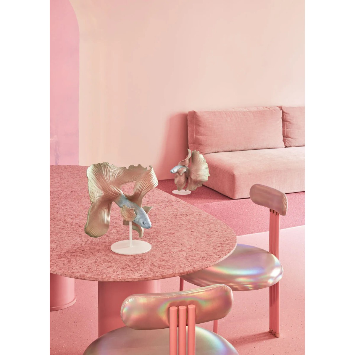 Среди невероятного разнообразия форм и расцветок рыб во всем мире, рыбка-петушок является одной из самых красивых. Благодаря высокой пластичности фарфора, художникам Lladró удалось передать изящество форм этой рыбки, когда она покачивается на воде, и воспроизвести все тончайшие нюансы ее жемчужного окраса.